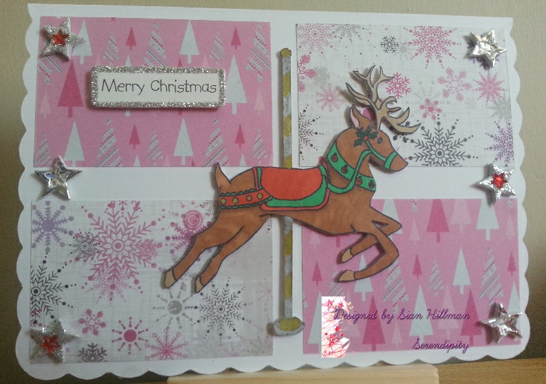 The card is A5 is A5 in size and is made from card from papermill. The blue and 2 purple card is also from papermill. The patterned papers are freebies from crafticious. I have then finished off with ribbon and dew drops from my statsh. I coloured the image in using promarkers, here is a list of the colours I have used.